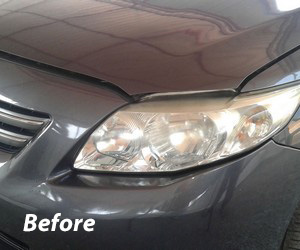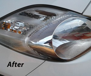 All vehicle headlight enclosures come from the factory with an Original Equipment Manufacturer (OEM) ultra violet protective coating. These OEM enclosures are polymer based, as is the coating, and they are bonded together prior to installation under intense UV light to assure an optically clear, durable and long lasting life. However, over time, Mother Nature’s natural sunlight will cause the headlight lens to slowly oxidize and turn cloudy, or discolored, producing not just a poor cosmetic appearance, but actually restricting the brightness of the headlights.